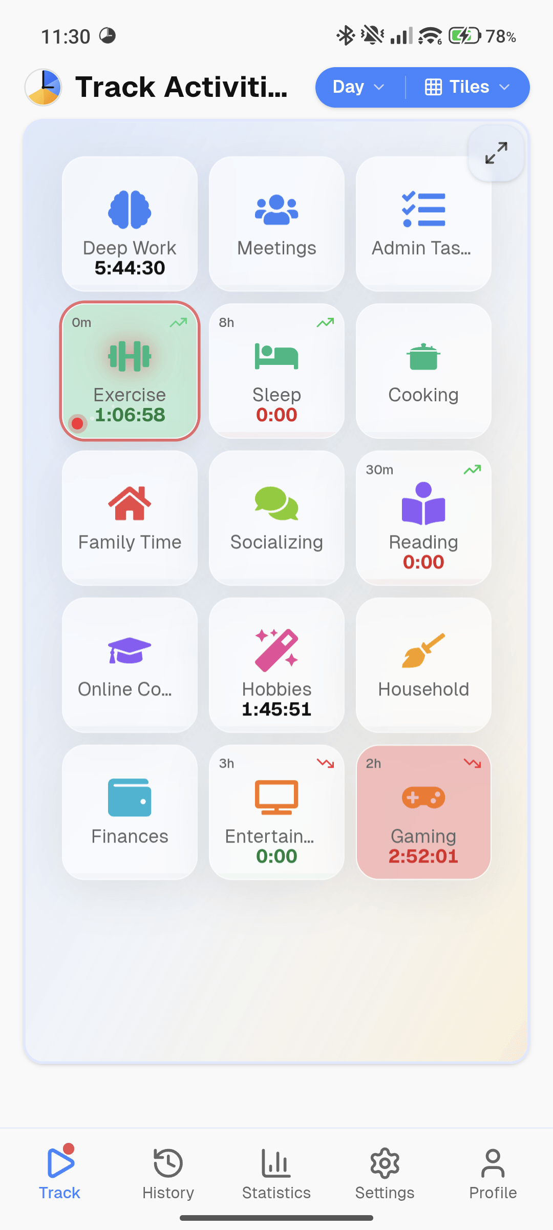Set daily, weekly, or monthly time goals for any activity. Stay accountable and track your progress over time.