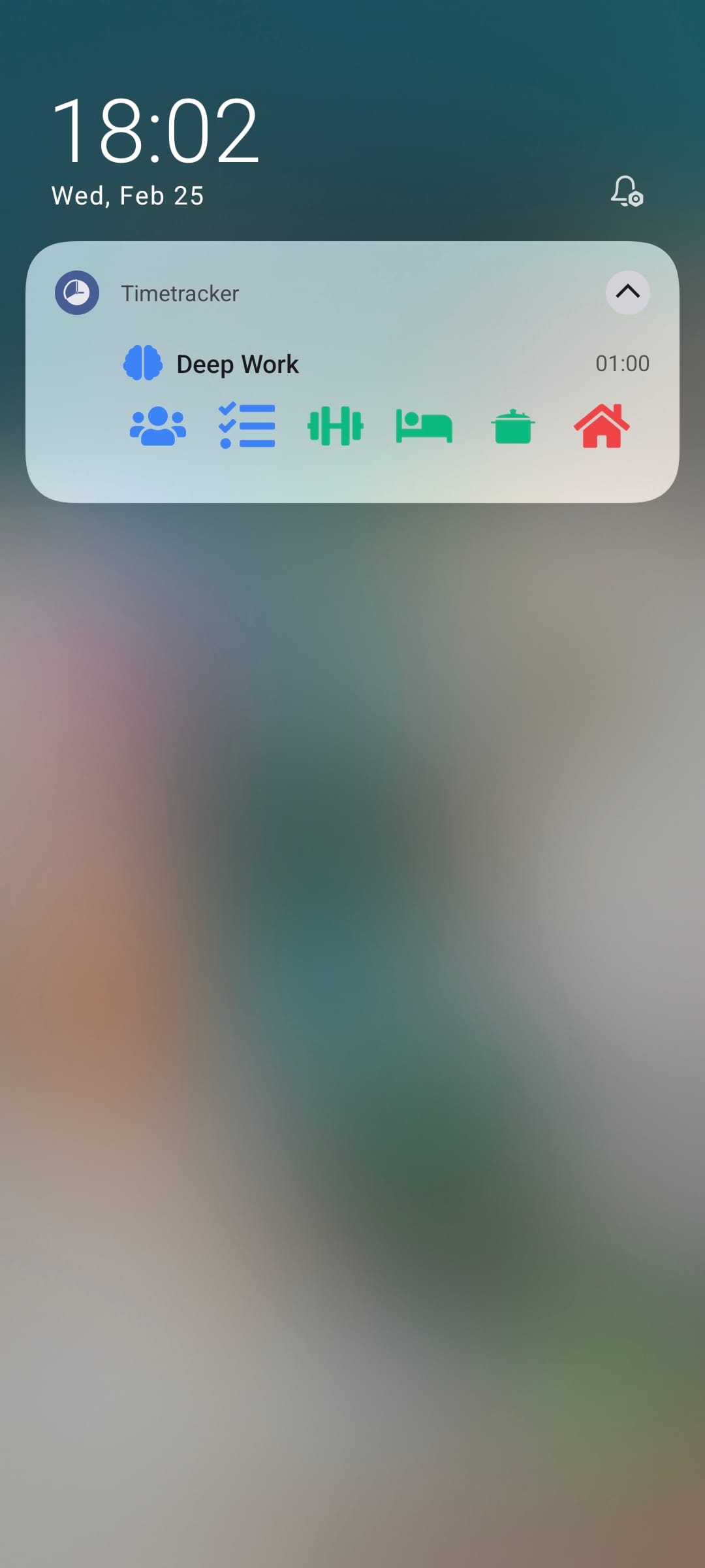 See your current activity in a persistent notification and switch from the notification bar. Add a home screen widget to start tracking with one tap — no need to open the app.